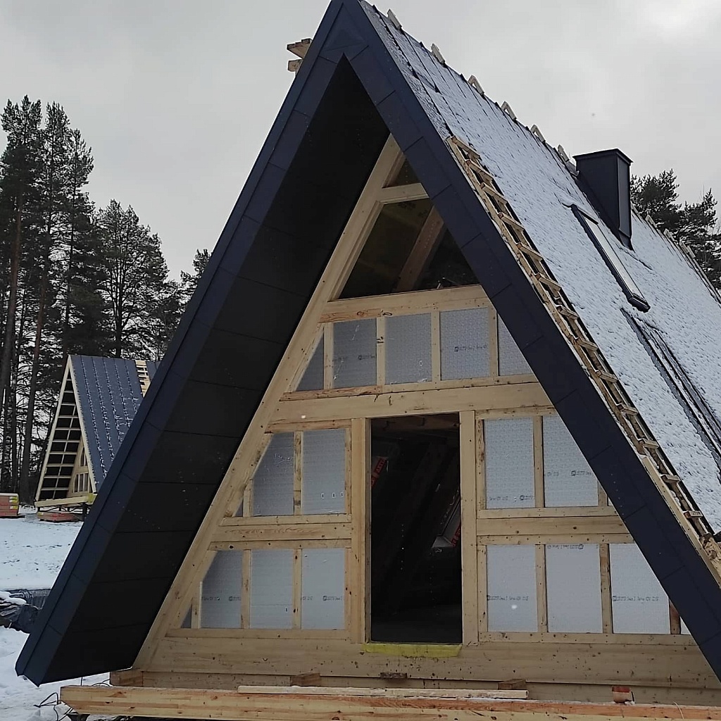 • Устройство и укладка мягкой кровли. Проводится подготовка основания стропил каркаса и обрешетки, теплоизоляционные мероприятия для утепления, укладка материала кровли;